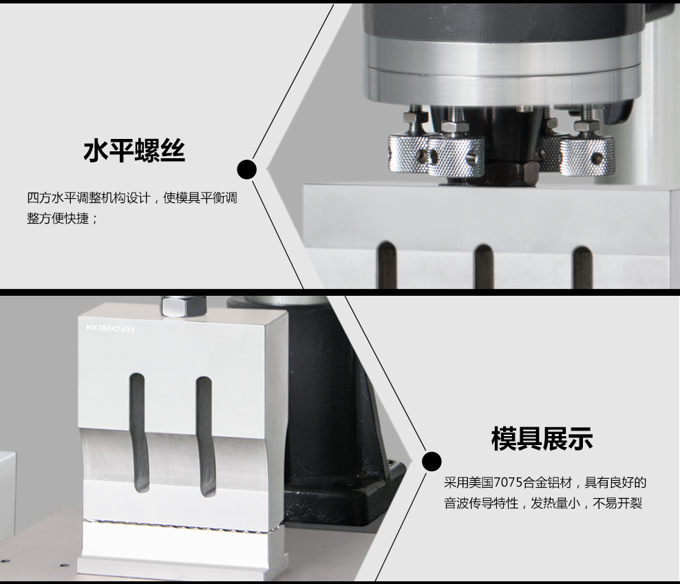 15K標準超聲波塑焊機是將超聲波通過焊頭傳導至塑料加工零件上,使兩塑料接合面因受超聲波作用而產生劇烈摩擦,摩擦熱使塑料接合面熔化而完成熔合。具有速度快,焊縫結實等優點,可使塑料產品生產加工自動化。超聲波塑料焊接機可進得塑料熔接、埋植、成形、鉚接、點焊、切除、縫合等操作。改變焊頭可一機做多種應用。