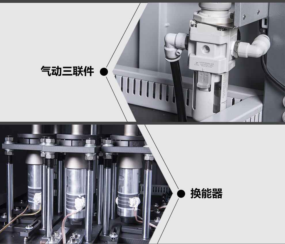 2.設(shè)備上模升降為氣缸驅(qū)動,超聲波焊接單元放置底部固定,由上模驅(qū)動下降整體焊接。