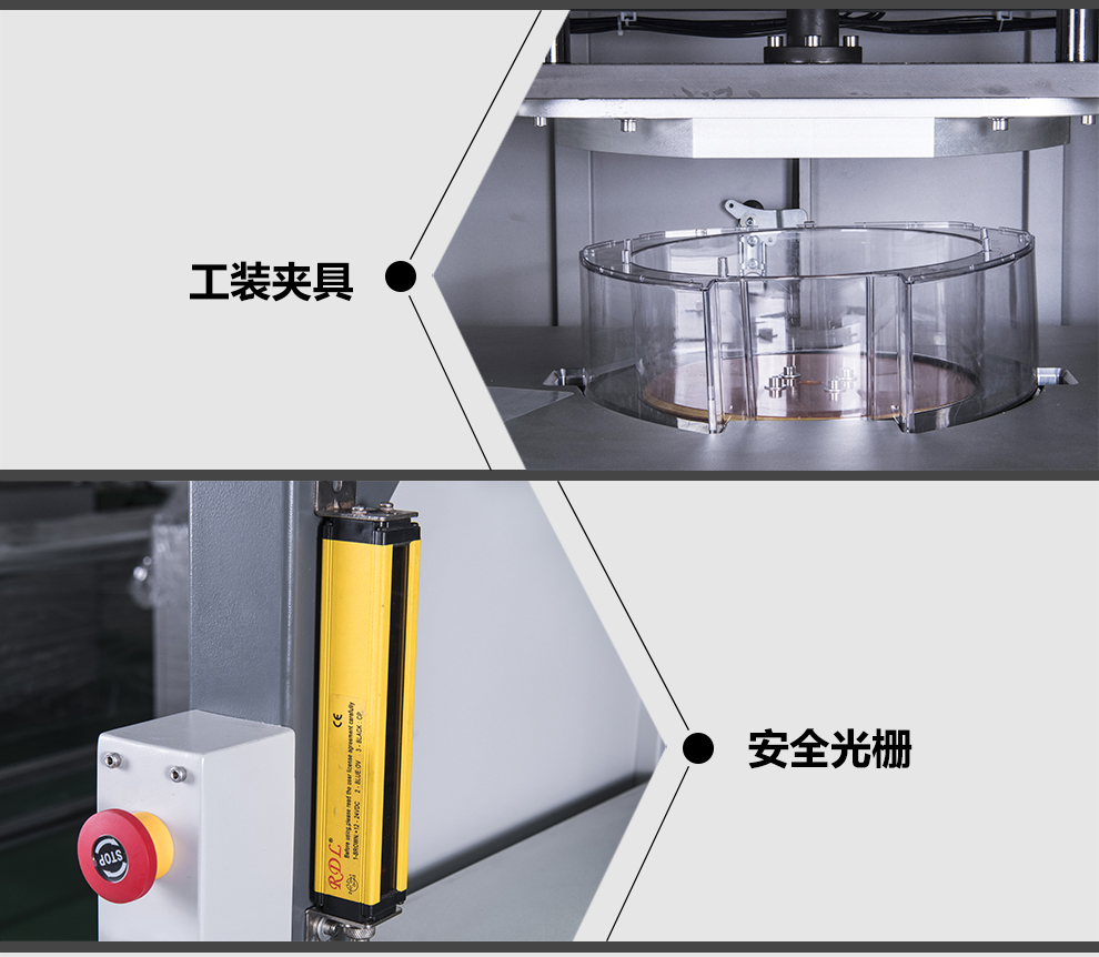 2.設(shè)備為雙手啟動,光柵保護,雙重保護。在緊急情況下,可遮