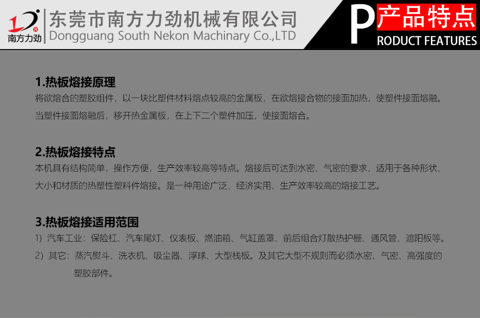 PP塑料托盤焊接機適用范圍:適用于PP、PE、ABS等熱塑料性材料及尺寸大而且復雜的塑料工件;適用產品:樂器音箱、電器制品、汽車水箱、塑料油箱、油箱、水壺、油壺專用焊接、保險杠、汽車儀表盤、儲電池、蓄電池、汽車車尾燈、汽車進氣管、洗衣機塑料平衡圈、洗衣鼓、洗碗碟機的水箱、塑料門窗、藥品容器等塑料制品及塑料包裝、PP馬桶蓋、PP塑料托盤、PP塑料棧板、螺母的埋植、熱熔鉚點、LED燈、塑料熱鉚、玩具洞洞球、香體露球、芳香劑、化油器、圓型容器、醫療容器、醫療管件、塑料卡板、蒸汽燙斗、足浴盆、建筑模板等大型復雜塑膠產品。