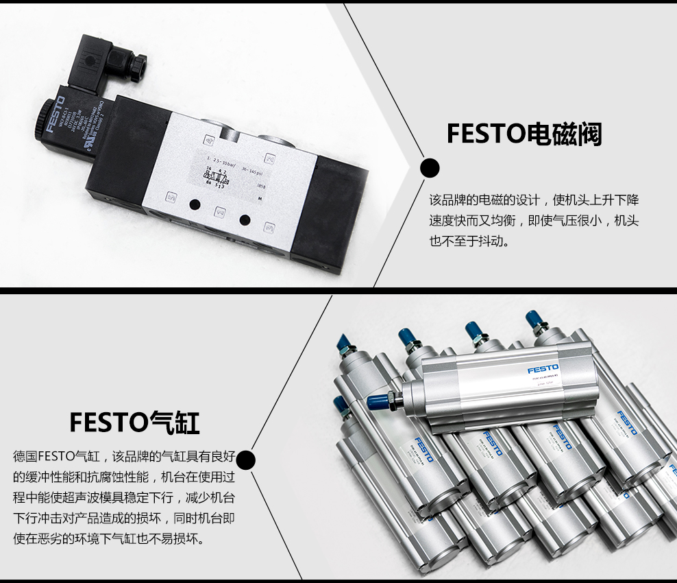6. 采用FESTO電磁閥、FESTO氣缸、FESTO精密調壓閥使動作更均衡、更穩定;